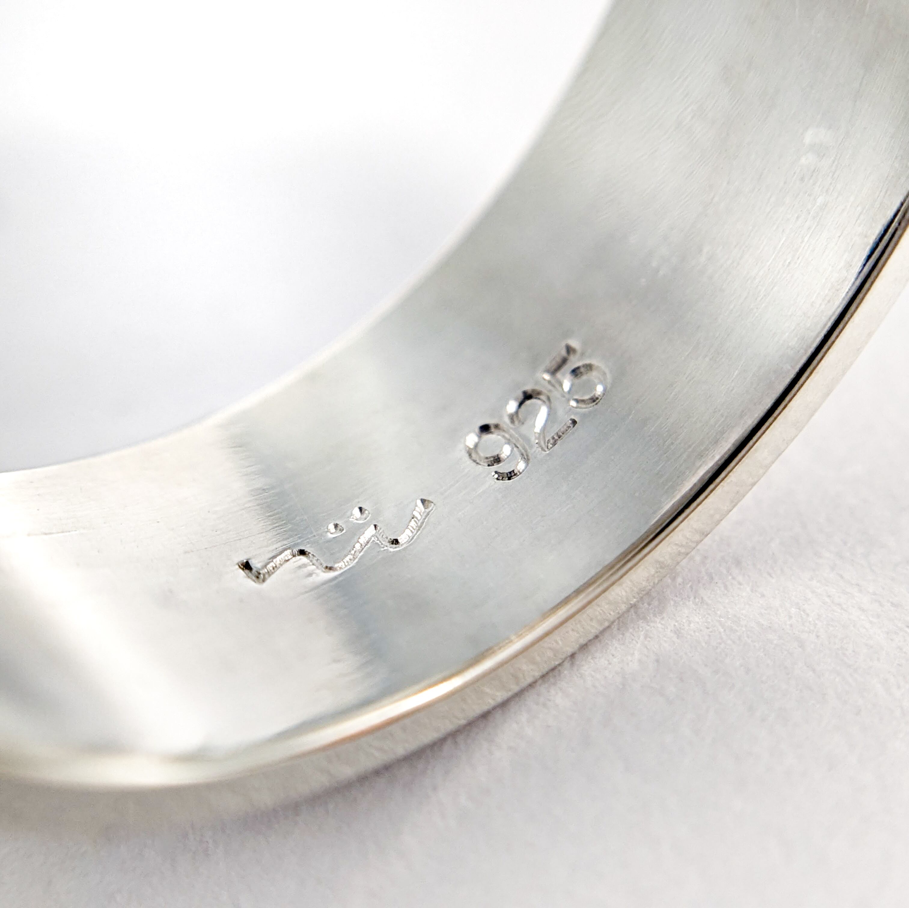 シルバー全体が鏡面仕上げになっており、ルースとともに艶やかな印象で指先を彩ります。