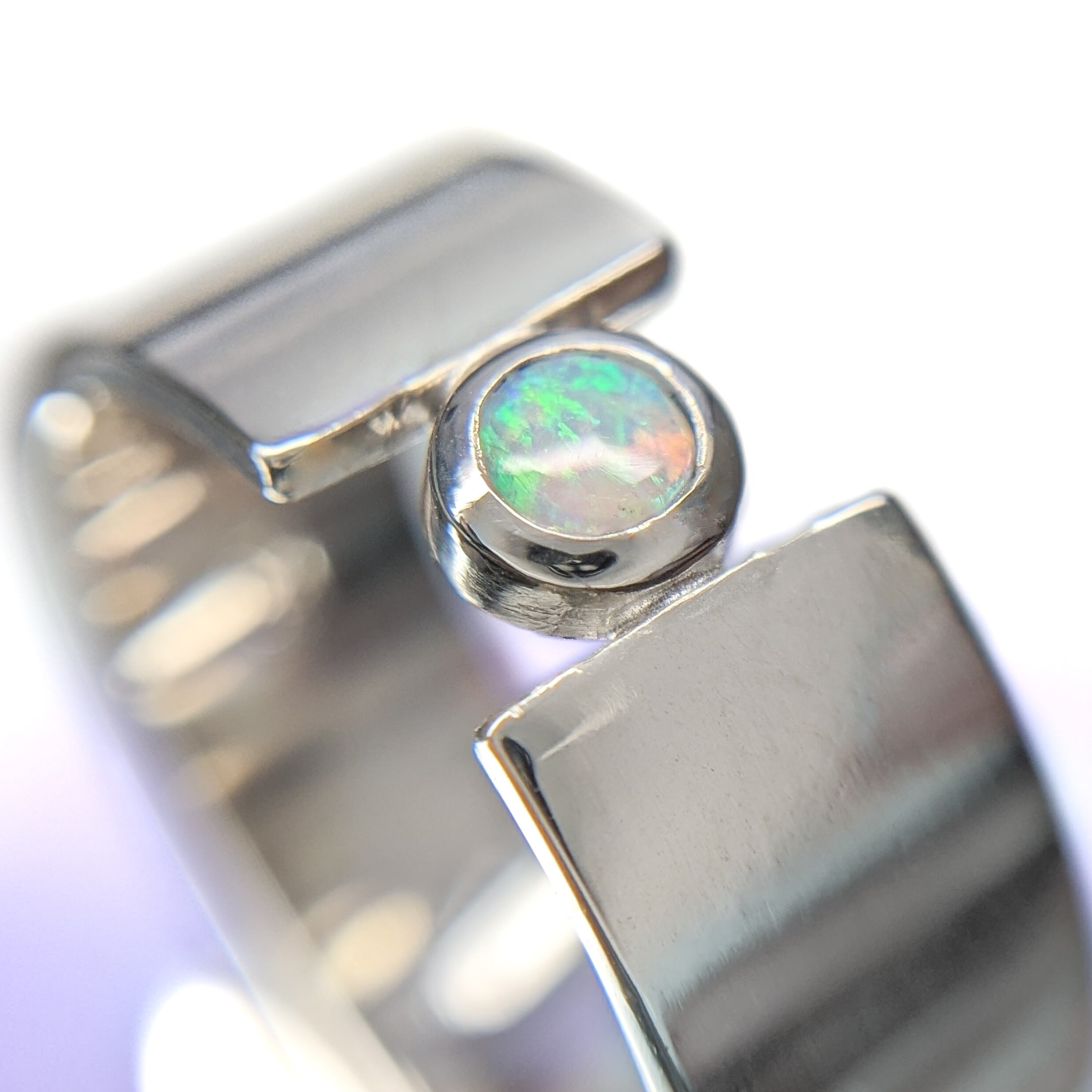 オーストラリア産クリスタルオパール・平打ちリング《round》