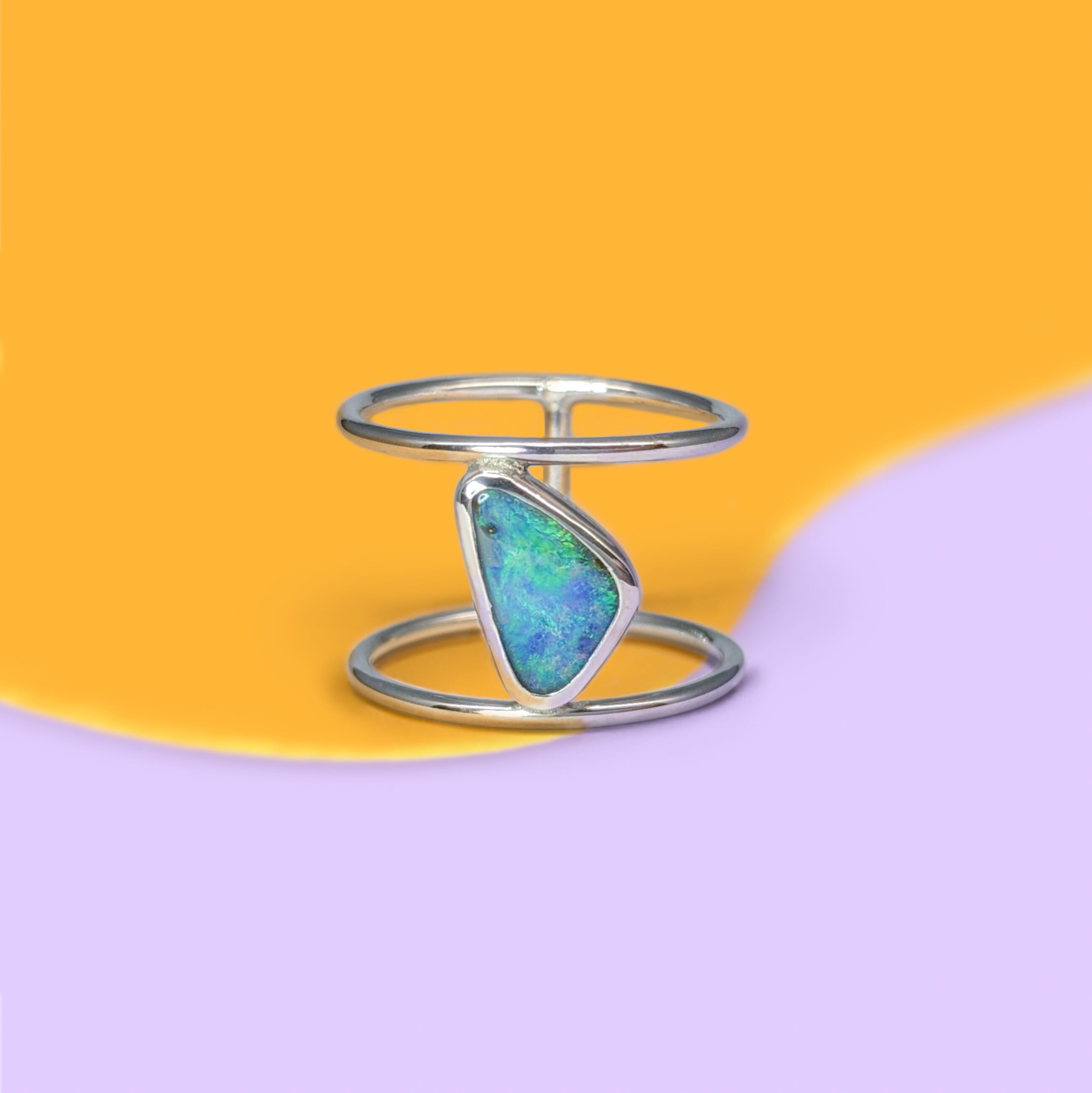 2連フープリングがシリーズになりました。カラフルな遊色がアクセントに効いた楽しげなボルダーオパールのリングが登場です。