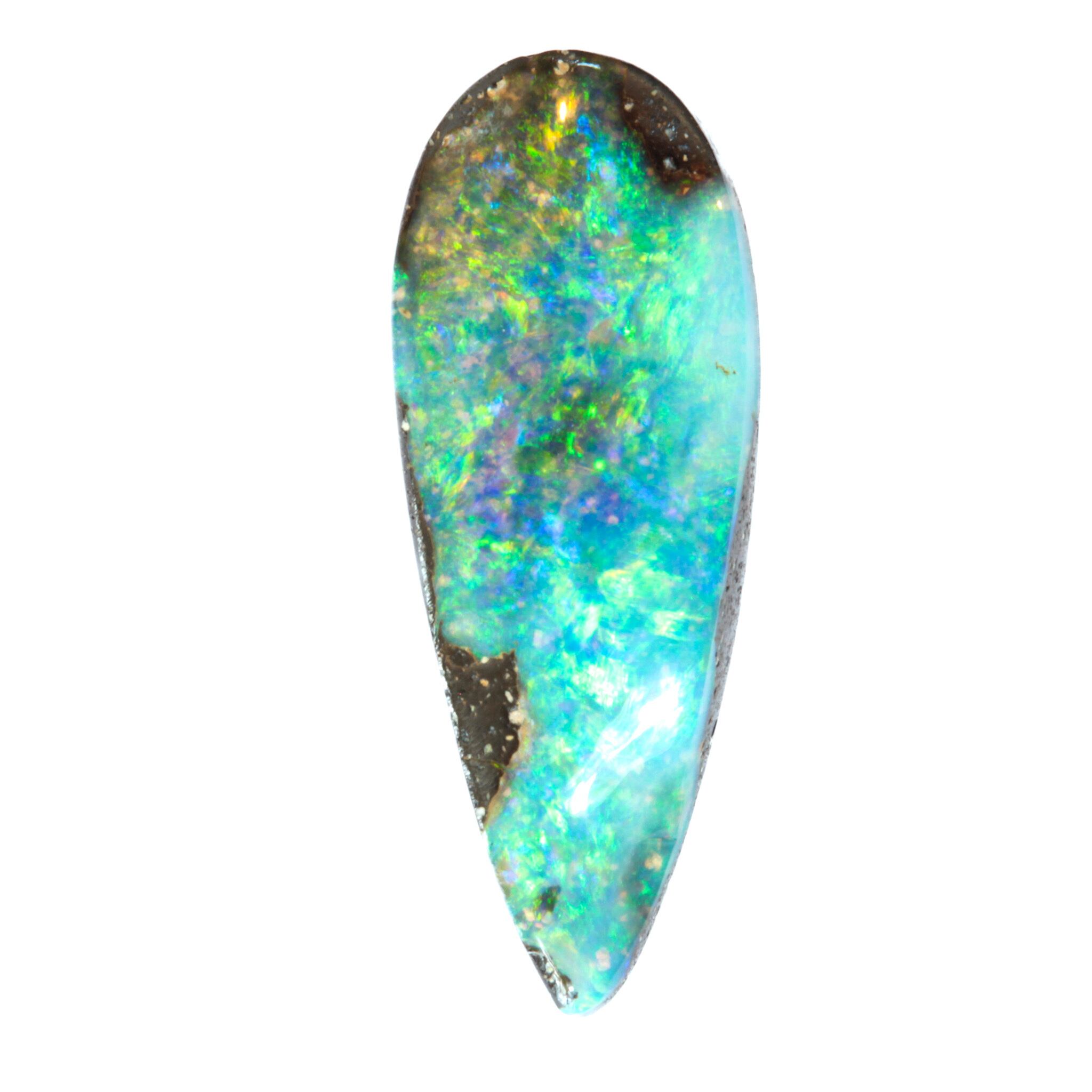 ミントグリーンを中心にした涼やかなブルー系の遊色が煌めくボルダーオパールです。
