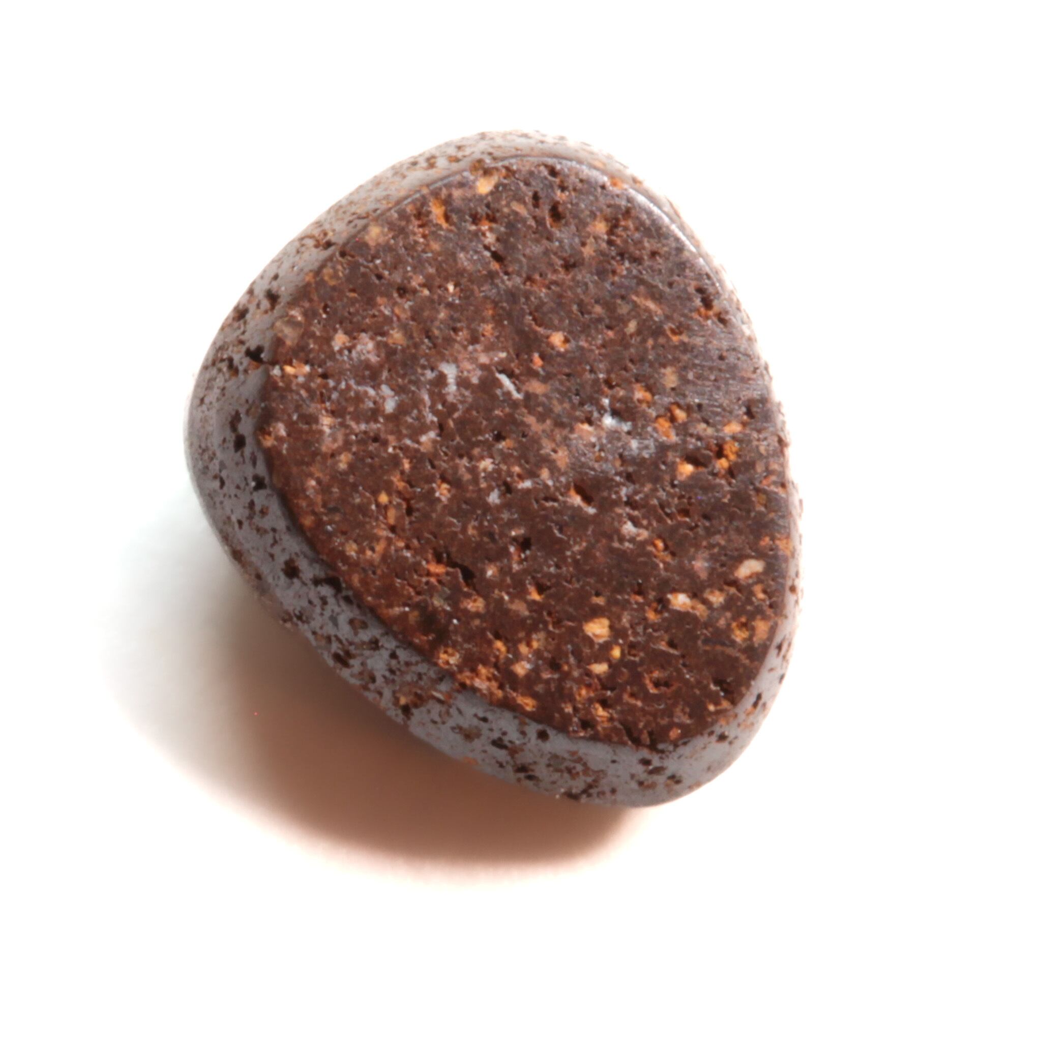 ルースの正面には鮮烈な赤と陽光のような眩いオレンジがギラリと輝き、角度を変えるごとに画家の絵筆が気ままに運んだ絵の具の彩りが現れます。