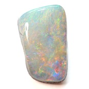 特徴的なスクエアのシェイプと飴の表面のようにつややかなミルキーカラーの遊色が輝くボルダーオパールです。