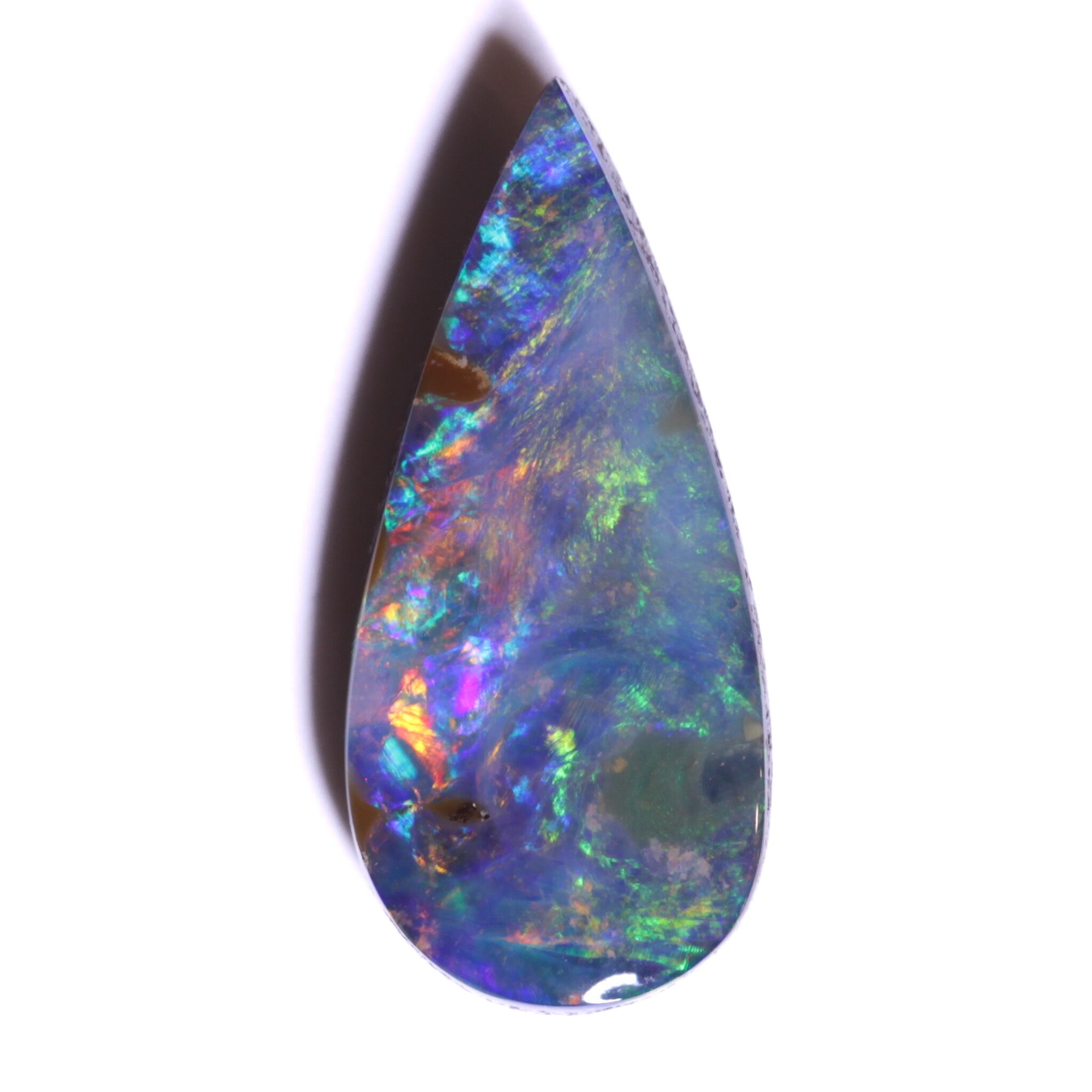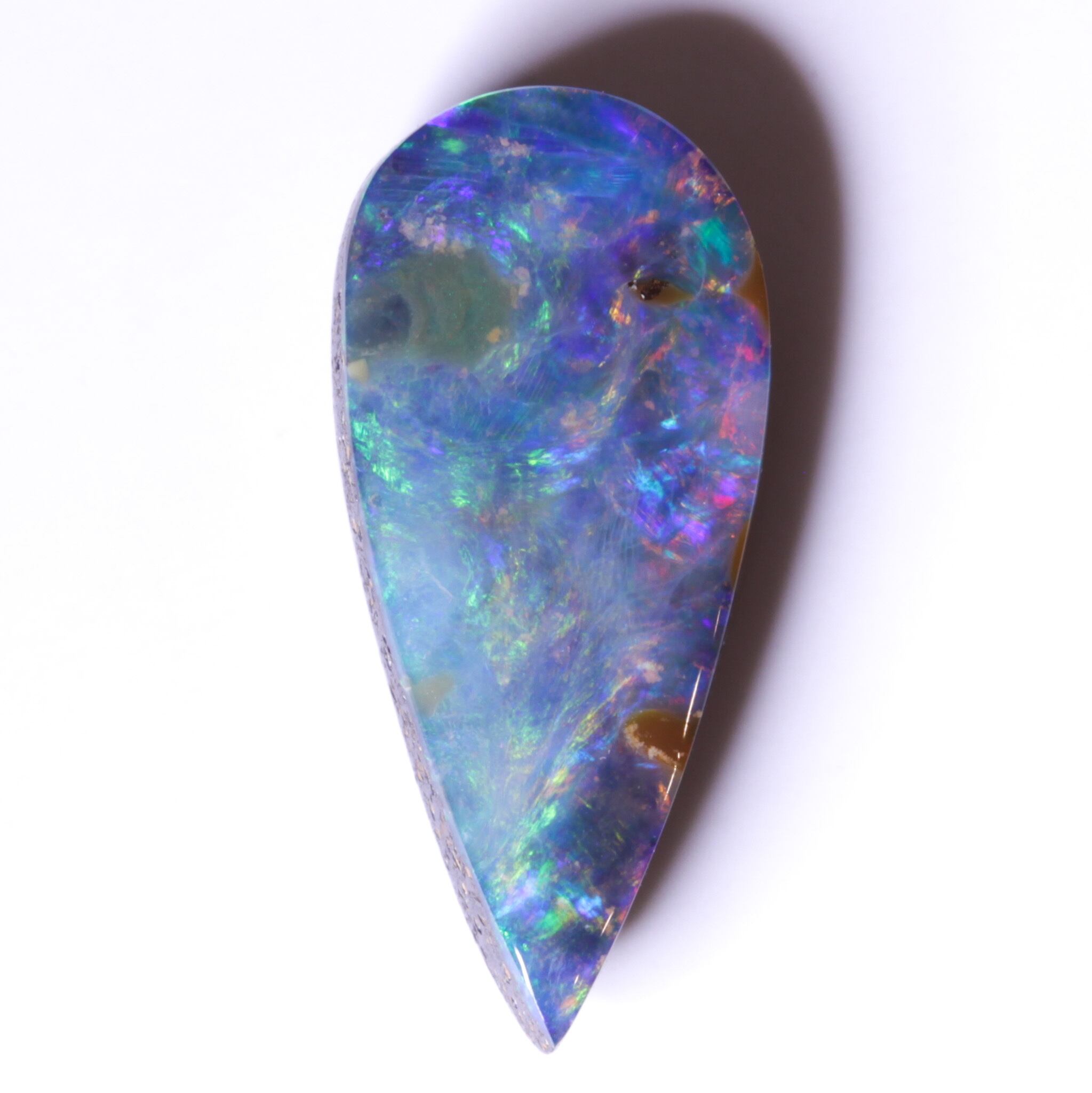 元々狙ってこの形になったのではなく、遊色の魅力を引き出すために削り込まれた結果がティアドロップ型となり、宝石の美しさを高めてくれています。